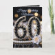 Celebrate a major milestone in magnificent style with this ultra-glamorous 60th Birthday card. This design features a stunning, high-resolution faux black diamond "60" bordered in brilliant white gemstones and rich gold accents, set against a luxurious navy black background with soft, glittering bokeh lights.