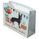 Desteis ursprungliga tecknad illustration av en svart färg-tysk Shepherd-hund. Hund placeras i en färglös födelsedagsinställning. Det finns en födelsedagskalas med lite ljus på den, färgstarka födelsedagsballonger och en buntbanderoll samt två presentboxar. Det finns också ett anpassningsbara textområde.