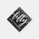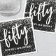 Personalized Fifty 50th Birthday Paper Party Napkins. These celebratory napkins feature the word "Fifty" big across the center in bold script, with "Name's 50th Birthday" displayed at the bottom in a clean sans serif font. Faux silver glitter sparkle confetti decorates the edges for a festive, shimmery touch. Designed in a simple yet stylish black and white theme, this minimalist layout keeps the focus on the milestone while adding a hint of elegance to your party. Fully customizable, you can change the font and background colors to match any birthday style or theme.