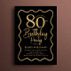 Black Gold 80th Birthday Wavy Border Inbjudningar