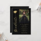 Sophisticated Dramatic Black and Faux Gold Effect Graduation Invitation with Photo and Graduate Cap Calligraphy.