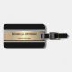 Black gold elegant modern striped personalized design with sophisticated tan nameplate banner and crisp white accent lines. Bold contemporary geometric pattern creates striking professional aesthetic perfect for business travelers and style-conscious professionals. Fully customizable with your name and personal text. Sleek modern design ideal for corporate travel, networking events, conferences. High-contrast color combination ensures instant baggage identification at airports. Premium quality durable materials. Makes impressive gift for executives, entrepreneurs, colleagues.