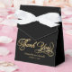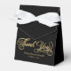 En bröllopsaffär med en svart bakgrund med ord "Tack" i faux guld foil och plats för namn och bröllop för bruden och brudgummen.