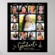 Rejoice and showcase this milestone of your favorite grad. Create this quirky, whimsical, simple, modern, personalized high school graduation K – 12 photo collage poster for a keepsake you’ll always treasure. Fun, white handwritten script typography and faux gold tone hand drawn style graduation icon sketch doodles, along with 13 custom photos of your choice, overlay a dramatic black background. Customize the text with your graduate’s name, school name, class year and add your 13 photos. Choose from numerous sizes. Matching invites, thank you cards, address labels, hand signs, stickers, banners and other graduation goodies are also available in this trendy and whimsical collection. Guaranteed to preserve cherished memories of their special occasion!