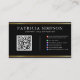 This sleek black card with gold accents features a customizable logo area, integrated QR code, and icons for your email and social media — merging style and connectivity. Perfect for professionals in consulting, real estate, design, or executive industries who want to elevate their brand identity. Present yourself with confidence through this luxury networking essential.