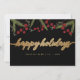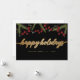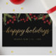 Black & Gold Red berries Happy Holidays Logo Julkort