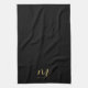 Black & Gold Text Name Sleek Script Monogram Kökshandduk