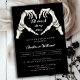 Black Gothic Kärlek Halloween Inbjudningskort för möhippan. Det minimalistiska Halloween-temat inbjudningskort för möhippan med handmålat vattenfärgat handskelett i form av ett hjärta, kalligrafi och enkel ren design. Svart bakgrund framför och bakom. Du kan anpassa texten, teckensnittet stil, färg och storlekt framför och bakom inbjudan.