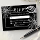 OSA i stil till vår "Black Gothic Skeleton Elegant Hallobröllop OSA kort! Detta noggrant designade kort anger tonen för ett hemligt och sofistikerat bröllop. Med de utrymmen som är avsedda för din gästs namn och svar förenklar det här kortet OSANS processaa, skapar det enkelt för dina nära och kära att bekräfta sin närvaro. Anpassa kortet med din information om bröllop, inklusive datum för svar. Inbjudan dina gäster att gå med dig i firande som överskrider det vanliga. Beordra vår Black Gothic Skeleton Elegant Hallobröllop i dag och låt den speciella dagens mystik imponera på alla som är närvarande!