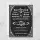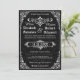 Här är Gothic Victorian, inspirerad bröllop spara datum i svart med ornament, scrollsar, rulla, en banderoll, en blommigt rulla ram, dammmönsterbakgrund och andra gamla stil-detaljer som alla inspirerats av medeltiden i Göteborg och Victorian. Elegans och förfining efter bästa förmåga. Du kan anpassa exempeltexten till fält.