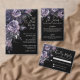 Till Death Do Us Part Dark Gothic Wedding RSVP or Reply Card — designed to match a moody, romantic wedding theme. This version features a mix of deep purple, dark gray, and black flowers and leaves for a soft boho gothic touch. The florals are placed along the left side of the card. On the top right, the phrase "Kindly Reply" is written in an elegant script font, with the RSVP information below in classic serif typography for a timeless and formal look. The back is a solid black background for a clean and dramatic finish. This dark and modern botanical style is perfect for autumn, fall, or winter weddings, or anytime you want a dark, elegant, and sophisticated look. All fonts and background colors can be customized to match your event. This card is available as a printed RSVP enclosure or as a downloadable digital file you can send via email or have printed locally.