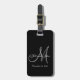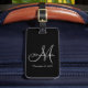 Elegant Monogram Bröllop Luggage Tag. Design av Elke Clarke © 2008 for MonogramGallery at Zazzle. Svartvit med gråttets inledande textövertäckning med brid och groom namn och bröllop datum.