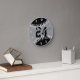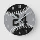 Välj ditt eget färg! Den här anpassningsbar färgen-väggklockan för en basebollspelare (eller fotbollsspelare) har bilden av en enkel svartvit baseboll med vit stygn - anpassa med idrottsmannens jersey-nummer - om du vill ändra färgen på basebollpanelens svarta & grått-paneler och jersey-nummer klickar du på knappen "Redigera den här designen" (ovanför) - det går att ta bort siffror från klockan ansikte - av katz_d_zzz_zz ynes