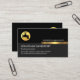 Täckningen har en svart och grått-skiktad design som avgränsas av en faux-guld-tabb nära mitten. Längst upp på den här fliken i guld finns affärssidan namn med en logotyp i guld som du kan använda på till lämnat. På grått lagrar ljuger du ditt prestigefyllda namn, jobbtiteln och kontaktuppgifter. På baksidan, i ett svart omslag, finns kortdetaljer på högerna. Logotypen i guld ligger överst och följs av namn, kontaktuppgifter och en slogan som du kan ändra. Detta kort skulle vara underbart för rörmokare till använda.