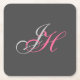 Black Grått Rosa Monogram Simple Plain Underlägg Papper Kvadrat