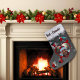 🎄This unique, personalized name and photos Christmas stocking has faux white fur across the top, your personalized family member's name in a snow-capped font, and images of power tools donning red bows, and a red heart containing your special uploaded photo.