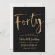 Fyrtio Svart och Falskt Guld Födelsedagsinbjudan med modern skriftsnitt. En enkel och rolig vuxen födelsedagsinbjudan för din 40-årsfest.