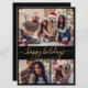 Elegant Simple Modern Black and Guld 4 Photo Collage Glad helg Script-Helgdag Card. Den här snygga, minimalistiska, vimiska 4-fotomallen (4) Julhälsningar en söt-rutnätsfotokollage och "Glad helg" hälsning-text som är skriven i ett vackert, snabbt och slitande slitsmönster från svan eller typografi i guld på svart bakgrund från färg. På motsatt sida med din meddelandemall för hälsning, med lite hjärtskugga och en vågrät fotomall. Söt hälsningskort för din familj och dina vänner under julens Julhelg.