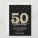 Elegant Black med guld glitter 50 och Fabulous Födelsedagsfest inbjudan med glitter accents. Lägg till dina party-uppgifter med hjälp av vår enkla mall.