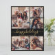 Elegant Simple Modern Black and Guld 5 Photo Collage Glad helg Script-Helgdag Card. (++) NOTERA ATT DESSA STORLEKA KORT PÅ 6,5" X 8,75" ÄR STÖRRE ÄN GENOMSNITTET, PÅ GRUND AV DET STÖRRE STORLEKA KORTET ÄR DET NÄSTAN SÄKERT ATT POSTAGKOSTNADERNA KOMMER ATT VARA HÖGRE. OM DU FÖREGÅR STORLEKA 5 X7 STANDARD KAN DU HITTA KORTET PÅ DEN HÄR LÄNKEN: https://www.zazzle.com/black_gold_5_photo_happy_holidays_christmas_holiday_card-256305538729375056 ELLER RULLA NEDÅT, OCH DU KOMMER ENKELT ATT HITTA 5 X7-KORTET I KOLLEKTIONEN NEDAN. ++++ Den här snygga, minimalistiska, visuella 5 (5)-fotokortmallen innehåller en söt-fotocollage och "Glad helg" hälsning-text som är skrivet i ett vackert, snabbt och snabbt tecken som heter swash-svan calligraphy eller typograhy script i guld på svart Julhälsningar bakgrund. På motsatt sida med din meddelandemall för hälsning, med lite hjärtskugga och en vågrät fotomall. Söt hälsningskort för din familj och dina vänner under julens Julhelg.