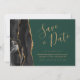 Den här eleganten är modern för att spara datumkortet och har en svart vattenfärg som ruttnar gräns med faux guld glitter. Anpassadet kombinerar handskriftsskript guld-färgad, kopieringsskylt och kursivt typsnitt på en bakgrundsbild av en grönt som går att hitta. Den omvända sidan har en matchande svartvit och guld agate-design.