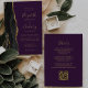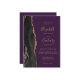 Den här elegantens lämnat kant har en modern bröllopsinbjudan med en svart vattenfärg som agerade i gräns som trimmas med faux guld glitter. Anpassadet kombinerar handskrift, rityta och kursivt typsnitt på guld-färgad mot lila bakgrund. På baksidan finns utrymme för bröllop-information på en solid lila-bakgrund, tillsammans med en QR-kodgäst som kan söka på webbplatsen och OSAN, vilket sparar kostnaderna för utskrift och utskick av separat OSA kort.