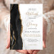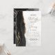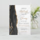 Den här elegantens lämnat kant har en modern bröllopsinbjudan med en svart vattenfärg som agerade i gräns som trimmas med faux guld glitter. Anpassadet kombinerar handskriftsskript med guld-färgad med svart tryckplåt och kursivt typsnitt på en grått- och vit marmorbakgrund. Den omvända sidan har en matchande svartvit och guld agate-design.