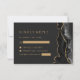 Det moderna kant-kortet i elegantens höger har en svart vattenfärgad geodedesign som trimmas med guld faux glitter. Rubriken "Kinly Reply" visas i ett latinskt teckensnitt med anpassade nedanför i guld-färgad på en svart bakgrund. En matchande svart och guld-agate-design visas på baksidan.