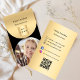 En svart och faux guld tittar bakgrund. Anpassa och lägg till logotyp, foto, namn, titel och kontaktinformation för ditt företag. Lägg till URL/länk för webbplatsen till Qr-koden. Med Facebook- och Instagram-ikoner. Svart text.