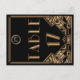 Med 1920:s tema "Den Underbara gatsby" i svarta och gyllene beige-skuggor och det invecklade geometriska mönster gräns är det ett häpnadsväckande exempel på Art Deco-rörelsen. Bride och Groom har monogram eller initialer, men med en distinktion mellan silver grått färg. Detta är en tvåsidig version av just det här bordsnumret, men observera att det är vykort lagrar och därför har bara den ena sidan en glansig avsluta.