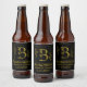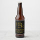 Öl flaska har guld handdragna botaniska ram med botaniska brev B i mitten på svart bakgrund. Anpassa med parets namn och/eller datum