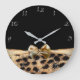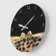 Black & Guld Bow Leopard Cheetah Animal Print Stor Klocka