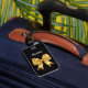 En svart bakgrund, dekorerad med en stor faux guld-båge på framsidan. Anpassa och lägg till ditt namn på framsidan. Din kontaktinformation på baksidan.