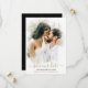 Du kan enkelt anpassa den här eleganten svart och fotot från guld bröllop spara datumkorten med ett modernt skriptteckensnitt.