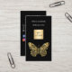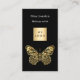 En svart bakgrund. Dekorerad med en faux guld-fjäril på framsidan. Anpassa och lägg till din logotyp, namn, titel och kontaktinformation. Lägg till URL/länk för webbplatsen till Qr-koden. Med Facebook- och Instagram-ikoner. Vit text.