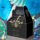 Den här designen har svart bakgrund i eleganten med en vintage som är guldfärgad färg-chandelier. Skämmaren guld avspeglar sin skugga som kontrasterar mot den svarta. Kombinationen av svart och guld färg skapar ett sofistikerat, trendig och chic stil. Utformning av en förmånslåda i elegant bröllop med modernt inslag. Den enkla uppställningen av typografin ge är ett distinkt stil. Det finns också möjlighet att matcha bröllopsinbjudningar och andra artiklar i kontorsartiklar.