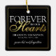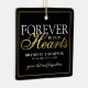 Elegantens minnesstund över julgran dekoration med texten "för evigt i våra hjärtan", deras namn, födelse/död data, en faux guld gräns, och minnet av "borta men inte glömd". På motsatt sida finns ett foto av den person du kommer ihåg.