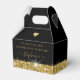 Elegant Black and guld party favbox med hjärta och gult guld glitter och konetti sprinkles mot svart bakgrund med anpassningsbar tack för din text, perfekt för en modern och gräns födelsedag, chic, Quinceañera, bat mitzvah, babydusch eller bachelorettfest. Du kan ändra typsnitt, färg och layout för att skapa en roligt och en unik personlig-förmånslåda för gästerna i party.
