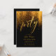 En 40-årig inbjudan till svarta och guld, limmat, modern, elegant och chic med en svart bakgrund med guld stoft (digital effekt), ord "fyrtio" täckt i guld folie (detta är också en digital effekt), ett modernt kalligrafiskript och typografi i ett guld-hue. En chic, tidlös design för en kvinna på hennes fyrtioårsdag.