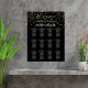 En klassisk svart bakgrund. Dekorerad med guldhjärtan. Anpassa och lägg till namn i bruden och brudgummen, lägg till dina gäster namn. Vit text.