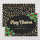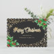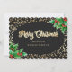 Elegant svarta och faux guld-folie, julkort med handskriven titel och med en vattenfärgning av holly med röda bär. Anpassa enkelt dessa svarta och guld-gröna julkort med ditt företag namn.