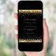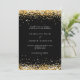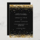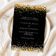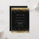 En modern bröllopsinbjudan. Svart bakgrund dekorerad med faux guld konetti. Anpassa och lägg till information om namn och bröllop. Vit färgad brev.