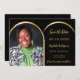 Ett foto Spara datumkortet för en 40:e (eller någon annan ålder) födelsedag. På framsidan: Lägg till ett eget storlekt foto för lodrät. Faux guld fotoarch ram. En svart bakgrund, gyllene text. Mallar för namn och datum. Namn och texten: Spara datumet är skrivna med ett modernt handskript i stil.