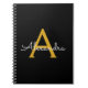 Black Guld Modern Script Girly Monogram Namn Anteckningsbok