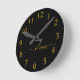 Black Guld Modern Script Girly Monogram Namn Rund Klocka