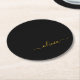 Black Guld Modern Script Girly Monogram Namn Underlägg Papper Rund