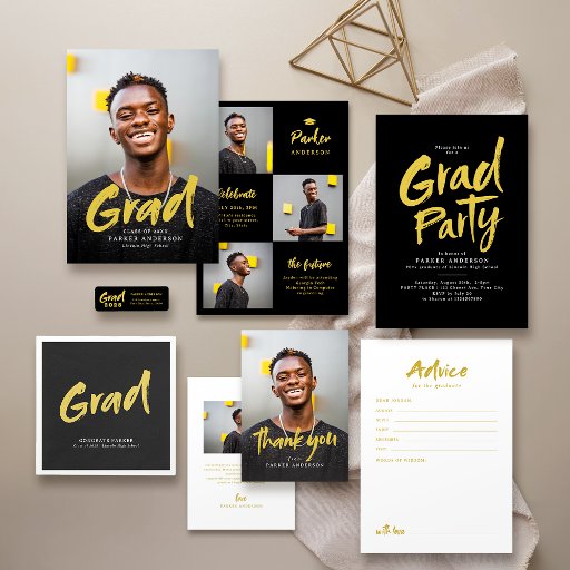 Black Guld Modern Script Photo Studenten Inbjudan