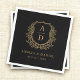 Black Guld Monogram Blommigt Vapensköld Bröllop Pappersservett