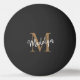 Black Guld Monogram Elegant Feminine Girly Script Ping Pong Boll. Anpassa enkelt den här moderna eleganten pinga boll med ditt anpassningsbar monogram och namn.