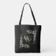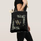 Elegant vattenfärgsgreenery löv blommigtar monogram namn tote väska med ett guld monogram initialt på en svart bakgrund med ditt namn angivet i ett snyggt vitt skript. Designad av Thisisnotme©